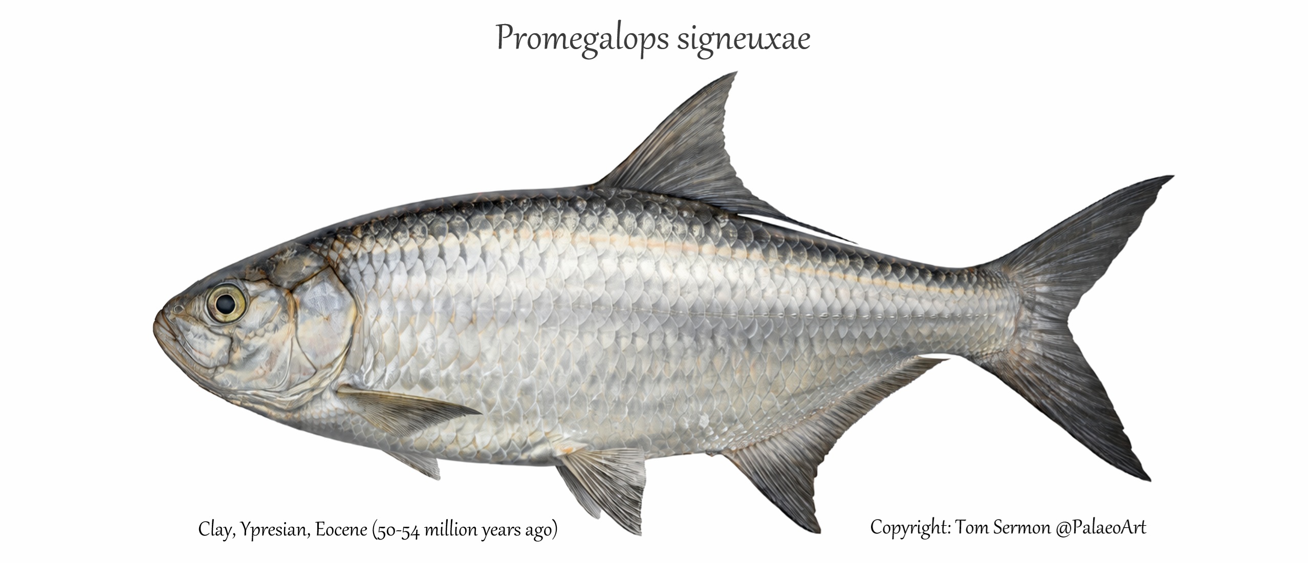 This is another incredibly rare fish from the London Clay with one specimen (the holotype) in public collections (in Paris) and another recently found example by Dan Hogburn. Both of these specimens are incredibly well preserved and show wonderful ornamentation on the top of the skull helping to differentiate from the other species of Promegalops (P.sheppeyensis).